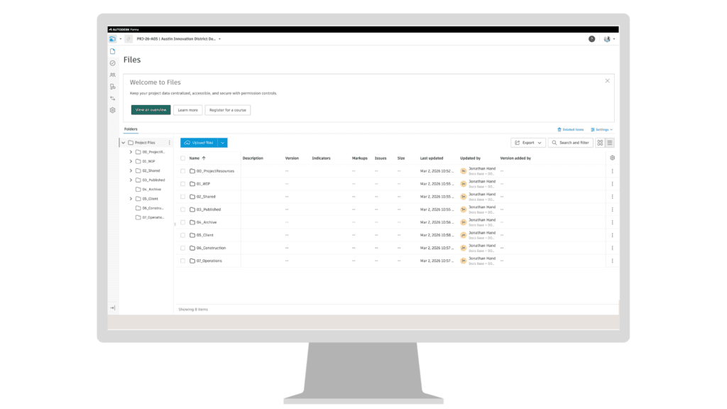 Datasets — це новий тип даних, що представляє гранульовані проектні дані, згенеровані через підтримувані workflow (наприклад, Revit Extended Properties). Вони відображаються в інструменті Files і доступні у зв’язаних застосунках, зменшуючи ручне перенесення даних між інструментами. Hub Admins отримали можливість централізовано керувати файлами підтримки AutoCAD у бібліотеці — шаблонами креслень, стилями друку, шрифтами — та розповсюджувати їх по проектах одразу. У рецензіях тепер можна надсилати сповіщення для закритих рецензій, а налаштування трансміталів автоматично застосовуються до нових проектів через шаблони.