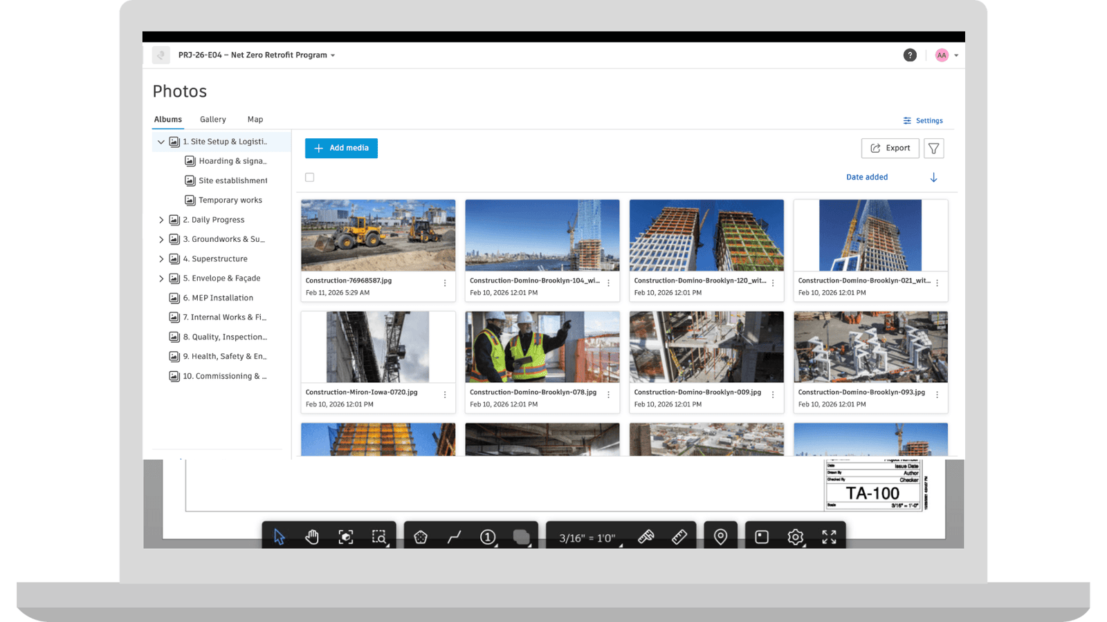 As-Built Export тепер підтримує фотоальбоми з нових проектів — фото організовуються за альбомами і легко включаються у фінальну документацію. У звітах з’явилися мініатюри фото з роздільною здатністю 1024px, а шаблони звітів, створені користувачами, тепер доступні безпосередньо в процесі створення нового звіту. Щодо специфікацій: система auto-sectioning стала точнішою для документів поза форматом CSI MasterFormat і для нерідних мов. Додалася можливість видаляти окремі розділи специфікацій, а дата випуску тепер визначає поточну версію — аналогічно до логіки інструменту Sheets.