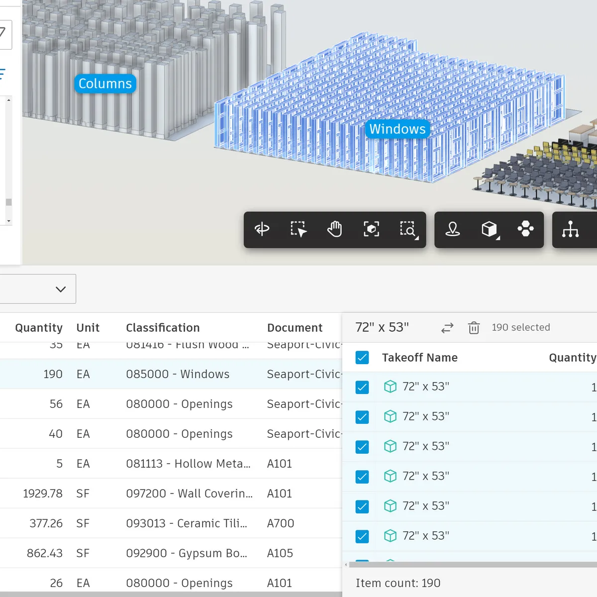 - Autodesk Takeoff — основний інструмент для 2D і 3D кількісних розрахунків